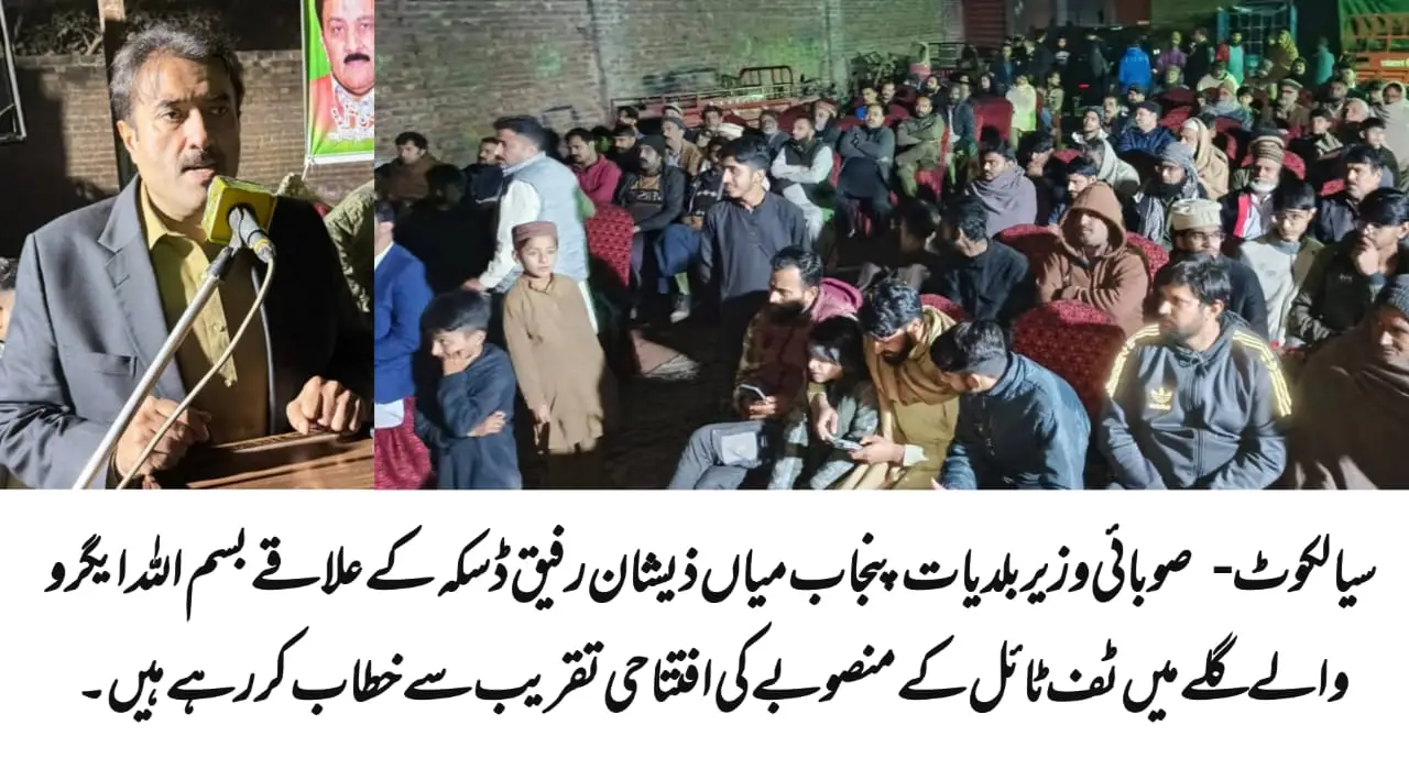 سیالکوٹ (22 دسمبر 2025): صوبائی وزیر بلدیات پنجاب ذیشان رفیق نے کہا ہے کہ پورے شہر ڈسکہ میں بلا تفریق ترقیاتی منصوبوں کا جال بچھایا جائے گا اور ڈسکہ کی کوئی گلی، نالی یا سڑک کچی نہیں رہے گی بلکہ تمام وارڈز میں یکساں بنیادوں پر ترقیاتی کام کروائے جائیں گے۔