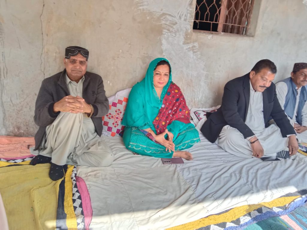 عمرکوٹ سندھ (بیوروچیف زیب بنگلانی) عمرکوٹ کے تحصیل کنری کے قریب ن لیگ کی اقلیتی ایم این اے نیلم کماری نے مورجھنگو کے علاقے میں تعزیتی دوروں کے دوران گاؤں حاجی سانون کپری پہنچ کر حیدر کپری کے انتقال پر مرحوم کے بھائی مبین کپری اور رشید کپری سے ملاقات کی اور گہرے دکھ اور ہمدردی کا اظہار کیا۔ اس موقع پر نیلم کماری نے کہا کہ دکھ اور غم کی اس گھڑی میں وہ متاثرہ خاندانوں کے ساتھ کھڑی ہیں اور اللہ تعالیٰ مرحومین کو جنت الفردوس میں جگہ عطا فرمائے۔ بعد ازاں نیلم کماری گاؤں گلو میگھواڑ پہنچیں جہاں ارجن میگھواڑ کے انتقال پر ان کے ورثا گووردھن پدھم اور بیٹے راجیش سے تعزیت کی اور صبر کی تلقین کی۔تعزیتی دوروں کے بعد نیلم کماری نے نواز لیگ کے کونسلر چینارام کی جانب سے دی گئی ڈنر پارٹی میں شرکت کی، جہاں علاقے کے سیاسی اور سماجی امور پر تبادلۂ خیال کیا گیا۔ آخر میں نیلم کماری نے میر امان اللہ تالپر کے ہاں منعقدہ چائے پارٹی میں بھی شرکت کی۔اس پورے دورے کے دوران نیلم کماری کے ہمراہ بھمر لال، موہن لال، مہیش کمار، میارام پرمار اور دادا میگھواڑ بھی موجود تھے۔