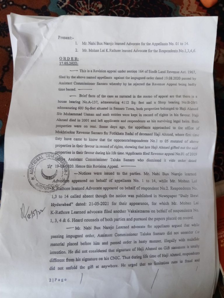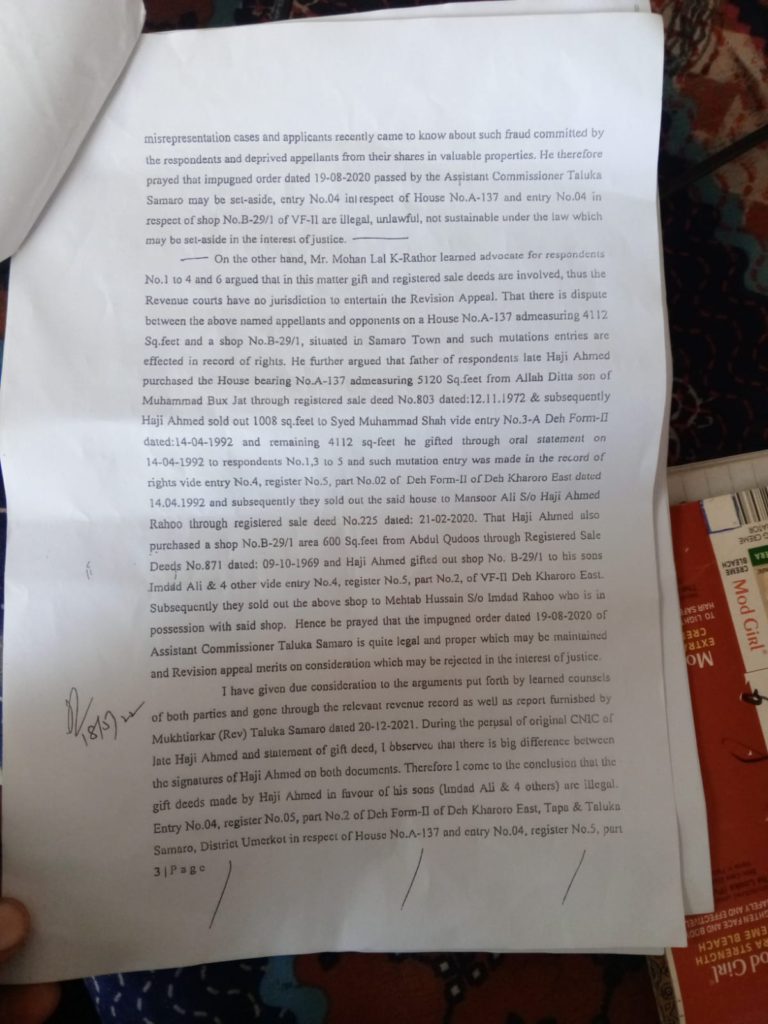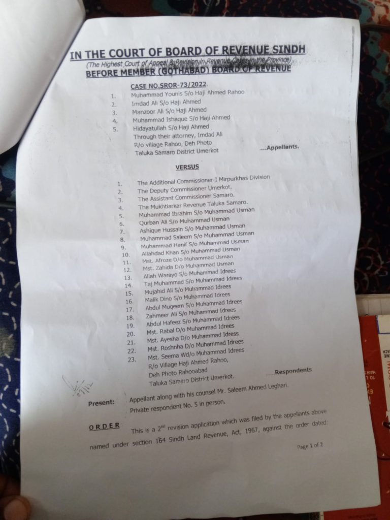 تفصیلات کے مطابق قربان علی راہو نے نیشنل پریس کلب سامارو پر میڈیا سے گفتگو کرتے ہوئے کہا کہ ہمارے چچا ہماری آبائی جائیداد خود ہی بیچ رہے ہیں اور ہمیں حصہ نہیں دے رہے۔ ہم نے کمشنر میرپورخاص کو درخواست دی۔ کمشنر نے انکوائری کی اور ہمارے حق میں فیصلہ دیا۔ پھر حاجی امداد راہو نے ریونیو بورڈ حیدرآباد کو چیلنج کیا۔ وہاں سے بھی فیصلہ ہمارے حق میں آیا لیکن اس کے باوجود حاجی امداد راہو جائیداد بیچ رہے ہیں۔ پراپرٹی سامارو میں ایک مکان A137، دکان نمبر B291 اور باقی پلاٹ ہين۔ جو ہماری مشترکہ جائیداد خریدے گا وہ اس زمین کا زميوار خود ہوگا۔ ان کا مزید کہنا تھا کہ حاجی امداد راہو اور بااثر لوگ ہمیں جان سے مارنے کی دھمکیاں دے رہے ہیں۔ ہمیں کوئی حصہ نہیں دے رہے۔ اگر ایسا ہوا تو ذمہ دار فریقین حاجی امداد راہو اور بااثر لوگ ہوں گے۔ ہم اعلیٰ حکام سے اپیل کرتے ہیں کہ ہمارے ساتھ انصاف کیا جائے۔