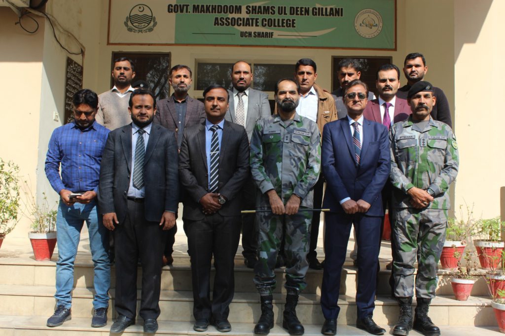 اوچ شریف (پ ر ) گورنمنٹ مخدوم سید شمس الدین گیلانی ایسوسی ایٹ کالج اوچ شریف میں پرنسپل کالج ہذا پروفیسر ممتاز ذیشان ڈاھر کی زیر صدارت آگاہی مہم بعنوان “منشیات سے انکار- صحت مند سماج ” ایک شاندار تقریب کا انعقاد کیا گیا۔ جس کا آغاز تلاوت کلام مجید اور نعت رسول مقبول صلی اللہ علیہ والہ وسلم سے کیا گیا۔ تقریب کے مہمان خصوصی جناب لفٹیننٹ کرنل (ریٹائرڈ) احمر نثار ستی (تمغہ امتیاز ملٹری) تھے۔بطور ڈائریکٹر،پنجاب کاونٹر نارکوٹکس فورس بہاولپور ڈویژن طلباء وطالبات و اساتذہ کرام سے اپنی گفتگو میں کہا کہ نشہ آور اشیاء کے استعمال سے فیمیلز، سوسائٹی اور ملک کی ترقی و حقیقی خوشحالی میں شدید بحران پیدا ہوتا ہے۔ڈرگ ذہنی صلاحیتوں کو ختم کر دیتا ہے۔نوجوان نسل کو ہر قسم کے نشے سے اجتناب کرنا چاہیے۔ اعلی تعلیم وتربیت و جدید ٹیکنالوجی سے ہی ہر میدان میں کامیابی ممکن ہے۔حکومت پنجاب کی سربراہی میں کاونٹر نارکوٹکس فورس پورے صوبے خصوصاً بہاولپور میں منشیات کی روک تھام کے لئے ایمانداری سے عملی اقدامات کررہی ہے۔ہماری فورس اس موذی مرض کو ختم کرنے کی ہر ممکن کوشش کررہی ہے۔انہوں پروجیکٹر کی مدد سے منشیات کی اقسام،ساخت،پیداوار،