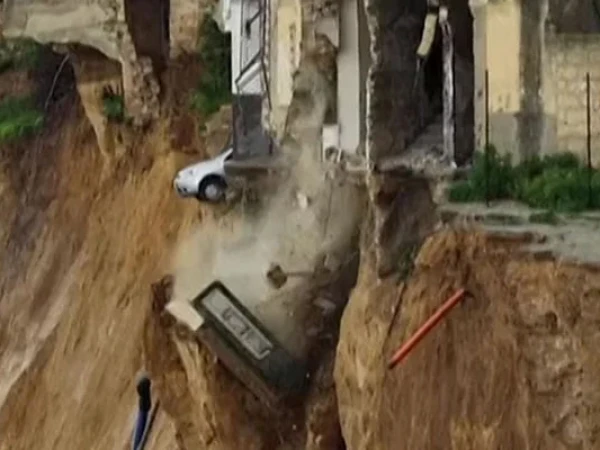 یہ دل دہلادینے والے مناظر اطالوی جزیرے سِسلی کے نیسچیمی قصبے کے ہیں۔ جہاں زمین مسلسل دھنستی جا رہی تھی اور گھر گاڑیاں خطرناک طریقے سے لٹکے ہوئے تھے۔