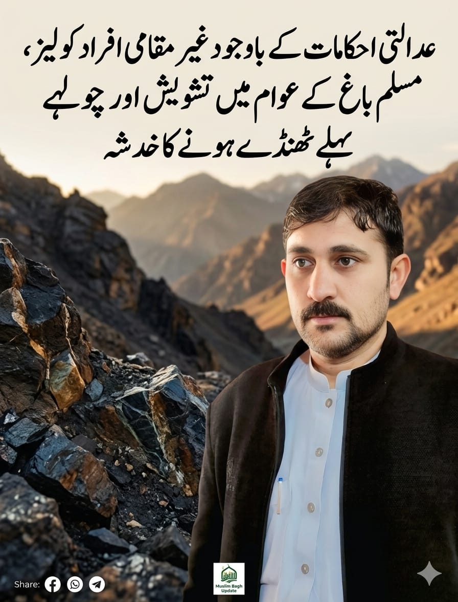 تاہم، نہایت افسوس کے ساتھ کہنا پڑتا ہے کہ ان واضح عدالتی احکامات کے برعکس، غیر مقامی افراد کو محض مالی وسائل اور اثر و رسوخ کی بنیاد پر مسلم باغ کے پہاڑوں میں واقع PCM کی کرومائیٹ کانوں کی لیز دے دی گئی ہے، جو کہ مقامی عوام کے ساتھ کھلی ناانصافی ہے۔