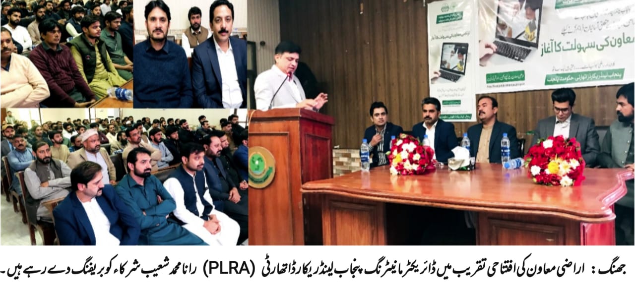 جھنگ ( قمر زمان نقوی) جھنگ میں اراضی معاون کی افتتاحی تقریب منعقد کی گئی جس میں ڈائریکٹر مانیٹرنگ پنجاب لینڈ ریکارڈ اتھارٹی (PLRA) رانا محمد شعیب اور ڈپٹی کمشنر جھنگ علی اکبر بھنڈر نے بطور مہمانِ خصوصی شرکت کی۔ تقریب میں ADCR ڈاکٹر امتیاز محسن ، ADCG عامر محمود ، ڈپٹی ڈائریکٹر PLRA رانا سیف اللہ، ڈسٹرکٹ انچارج لینڈ ریکارڈ جھنگ اشعر حمید سیال، اسسٹنٹ سروس انچارج سید وقاص حیدر سمیت اراضی معاون فرنچائزرز کی بڑی تعداد موجود تھی۔تقریب سے خطاب کرتے ہوئے ڈائریکٹر مانیٹرنگ PLRA رانا محمد شعیب نے اراضی معاون پروگرام کے حوالے سے شرکاء کو تفصیلی بریفنگ دی اور اس کے مختلف پہلوؤں سے آگاہ کیا۔ انہوں نے کہا کہ عوام کو ان کی دہلیز پر فردِ ملکیت کی فراہمی اور انتقال کے اندراج جیسی سہولیات فراہم کرنا پنجاب لینڈ ریکارڈ اتھارٹی کا قابلِ تحسین اقدام ہے۔ اس سہولت سے شہریوں کو دفاتر کے چکر اور قطاروں میں لمبی انتظار گاہوں سے نجات ملے گی جبکہ سفری اخراجات کی بچت بھی ممکن ہو سکے گی۔رانا محمد شعیب نے مزید کہا کہ اراضی ریکارڈ کی جدید سہولیات، اراضی معاون کی شاندار خدمات کے سلوگن کے تحت عوام کو فراہم کی جا رہی ہیں۔ عوام کو زمین کے ریکارڈ سے متعلق آسانیاں پہنچانے کے لیے اراضی معاون سروس کا باقاعدہ آغاز کر دیا گیا ہے۔
